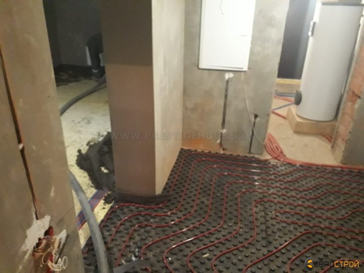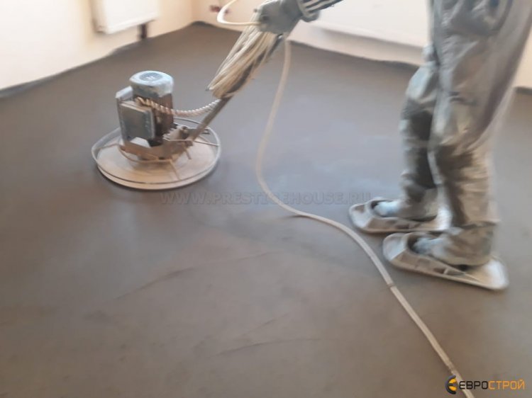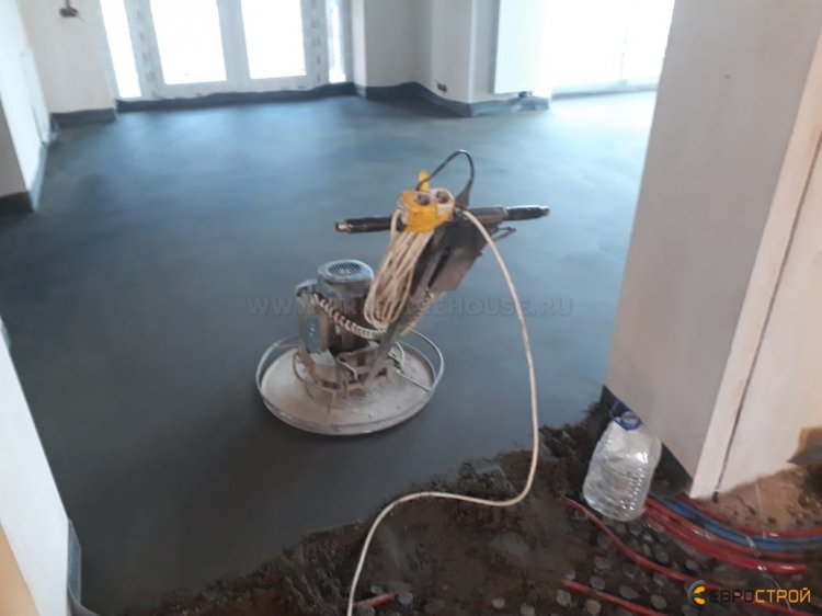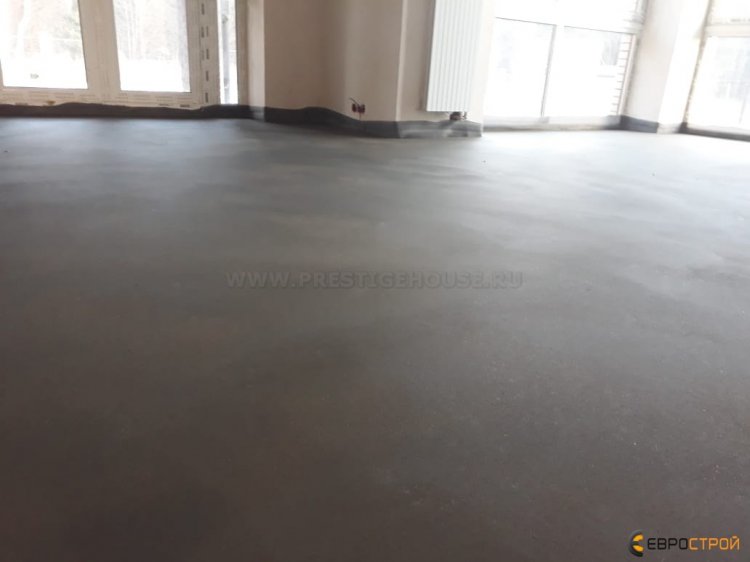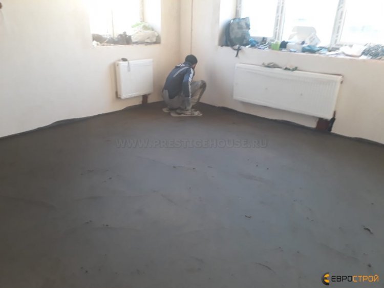 Выполнили работы по устройству полусухой цементно-песчаной стяжки в коттеджном поселке «Федоскино парк». Площадь объекта 262 квадратных метра, толщина слоя стяжки 70 миллиметров. Сроки проведения работ — 2 дня. Частичная укладка на водяной теплый пол.