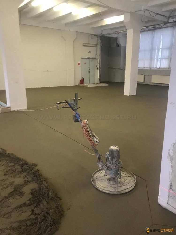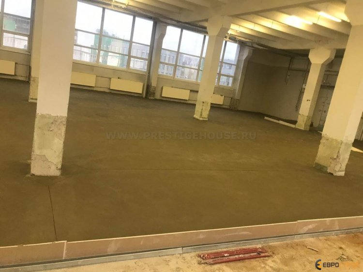 Завершен очередной этап работ по устройству полусухой стяжки пола. Выравнивание пола проводилось в офисном центре на ул. Нагорная. Общая площадь 535 квадратных метров, сроки проведения работ всего 2 дня силами одной бригады.