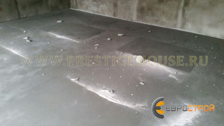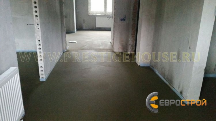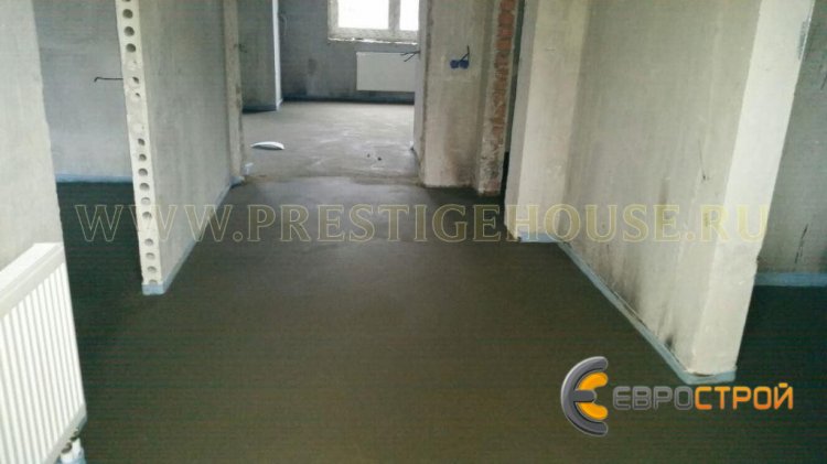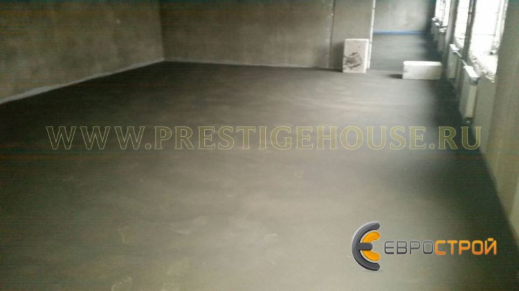 Компания "Еврострой" продолжает работы по устройству полусухой выравнивающей стяжки пола в районе Щелково, в коттеджном поселке "Варежки" в 13 км от МКАД по Щелковскому шоссе.