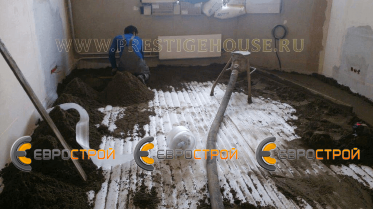 Закончен очередной этап работ по устройству полусухой стяжки пола в Коммунарке.