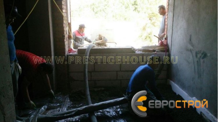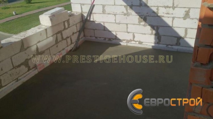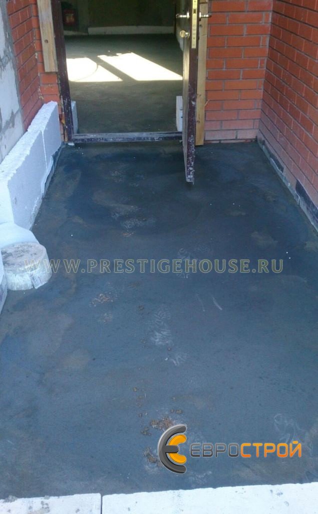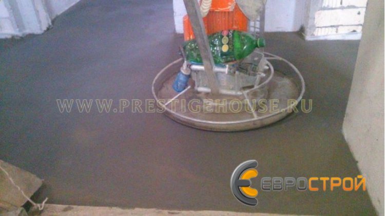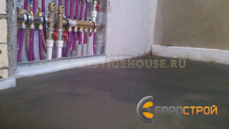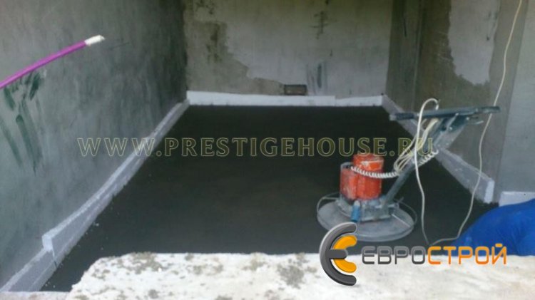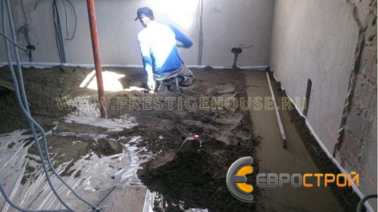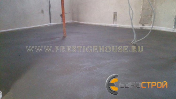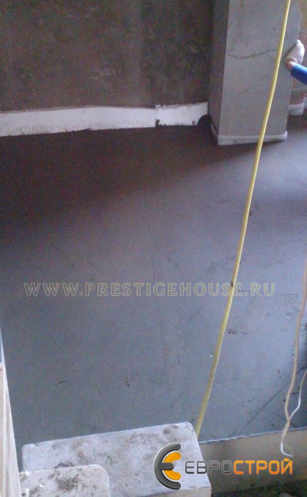 Полусухая стяжка пола в коттедже в Бутово, площадь 197 м2, толщина слоя - 70 мм, выравнивание пола полусухим цементно-песчаным раствором с фиброволокном.