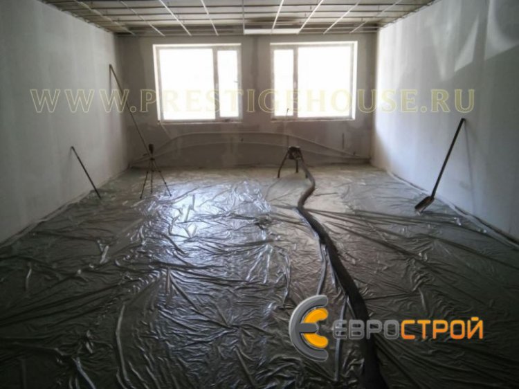 22 сентября 2015 года Компанией "ЕВРОСТРОЙ" успешно завершен очередной этап работ по устройству полусухой стяжки пола.
