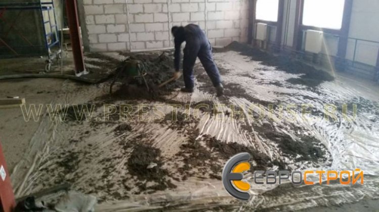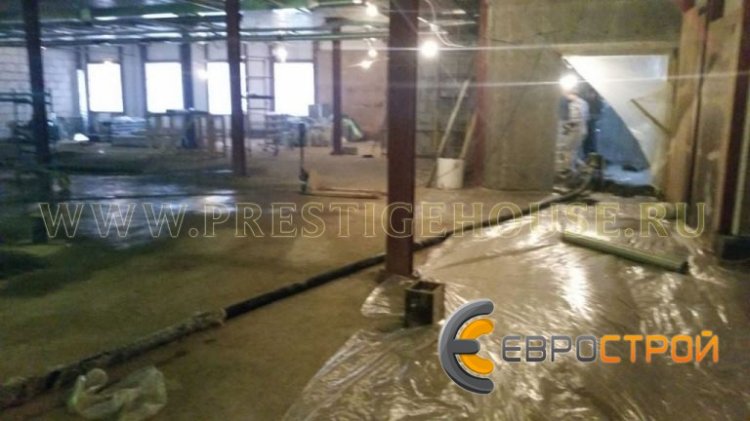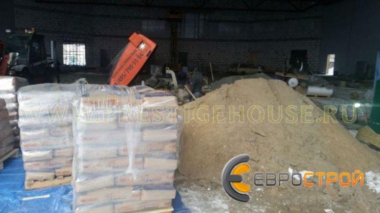 Работы по устройству полусухой стяжки не являются исключением. 14 декабря 2016 года мы приступили к заливке стяжки в строящемся ледовом дворце в городе Королев Московской области. По заданию Заказчика стяжка должна иметь марочную прочность М-200, в связи с этим помимо песка, цемента и фиброволокна мы добавляем гранитную крошку фракции 2-5 мм, которая придает дополнительную прочность стяжке. Общая площадь выполняемых работ составляет 2 250 квадратных метров при среднем слое 60 мм. Сроки окончания работ 30 декабря 2016 года.