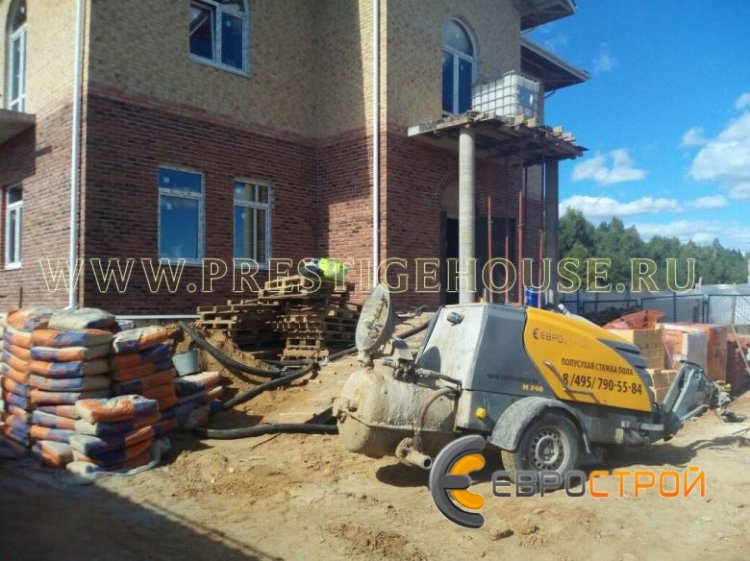 Компания "Еврострой" выполняет работы по устройству полусухой стяжки пола как в Москве и Московской области, так и в соседних регионах. Наличие собственной техники позволяет нам выполнять работы за пределами Московской области по приемлемой цене. В сентябре мы проводили работы по стяжке пола в Твери. Наша компания уже не один раз выполняла стяжку в Тверской области, поэтому по рекомендации одного из наших Заказчиков мы снова вернулись в этот чудесный город. Стяжка заливалась в коттедже на общей площади 535 квадратных метров и среднем слое 60 миллиметров. Для устройства стяжки использовался немецкий растворонасос Putzmeister M740. Весь комплекс работ был выполнен за 3 дня. Обращаясь в нашу компанию Вы получаете прочную и идеально ровную полусухую стяжку по антикризисным ценам. На все работы предоставляется 2-х годовая гарантия.