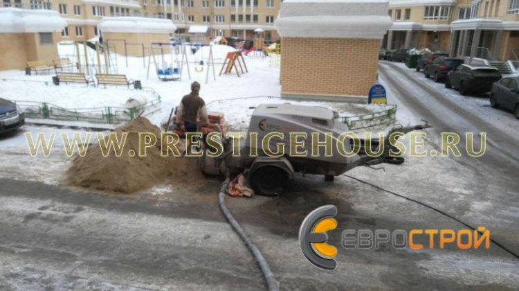 Компания «Еврострой» использует только современное немецкое оборудование, способное подавать раствор на высоту 30 этажа.