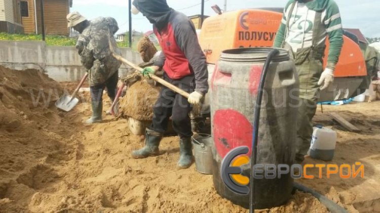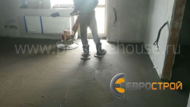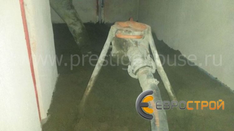 Работы проводились в коттедже в городе Яхрома, что в 55 километрах от Москвы по Дмитровскому шоссе с населением около 15 000 человек. Стяжка заливалась в коттедже на общей площади 450 квадратных метров, средний слой стяжки составил 60-70 миллиметров. Данный объект нами был выполнен всего за 2 дня. Преимущество полусухой стяжки заключается в том, что в максимально короткие сроки возможно уложить стяжку практически на любое основание без каких-либо перепадов.