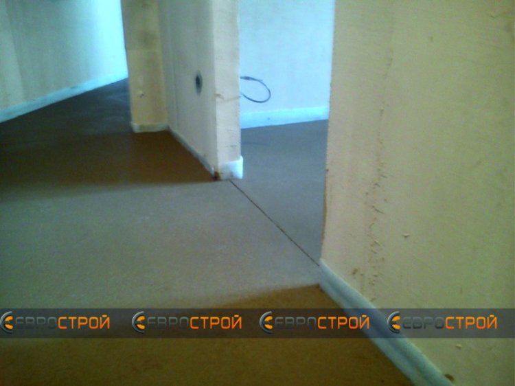 Закончены работы по устройству полусухой стяжки пола на ул. Александры Монаховой д. 23.