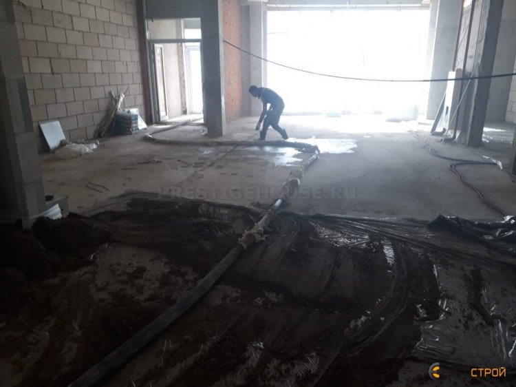 Завершены работы по выравниванию пола полусухим методом в новом магазине «ВкусВилл» у метро Ботанический сад.